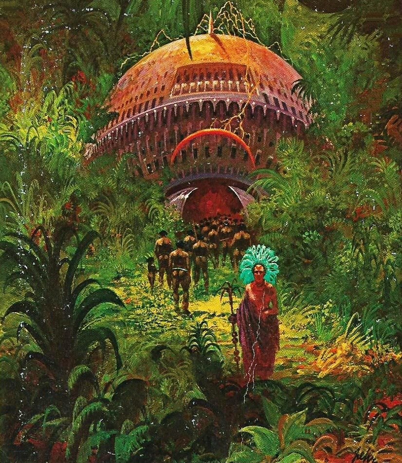 As Lehr’s career took flight, he found himself gravitating towards the surreal and abstract. Inspired by the works of Richard Powers, Lehr began to infuse his art with a touch of the otherworldly. His paintings became atmospheric masterpieces, built around saturated colors and harmonies that evoked the very essence of science fiction. Gone were the days of foregrounded figures; instead, Lehr’s landscapes were dominated by gargantuan egg-like structures and spherical objects, dwarfing the human presence.