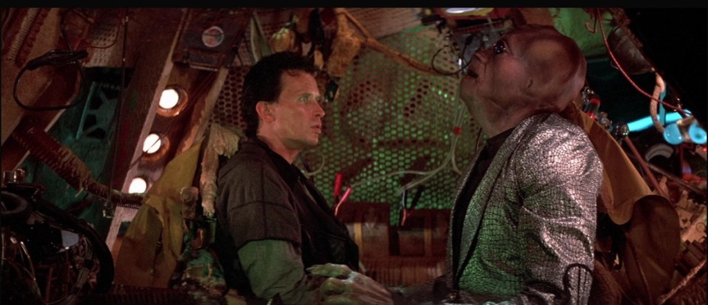 While Weller’s Banzai anchors the film, it’s the supporting cast that truly brings the world to life. John Lithgow chews the scenery with gusto as the unhinged Dr. Emilio Lizardo, a scientist possessed by an alien consciousness. His performance is so gloriously over-the-top that it threatens to destabilize the entire film, yet somehow it works within the context of this bizarre universe.