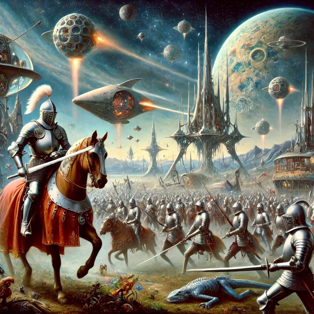 Picture this: it’s 1345, and an alien spaceship lands in a small English village. The medieval inhabitants, led by Sir Roger de Tourneville, manage to capture the ship and decide to use it to take their crusade to the stars. What follows is a rollicking adventure that turns the typical “alien invasion” trope on its head.