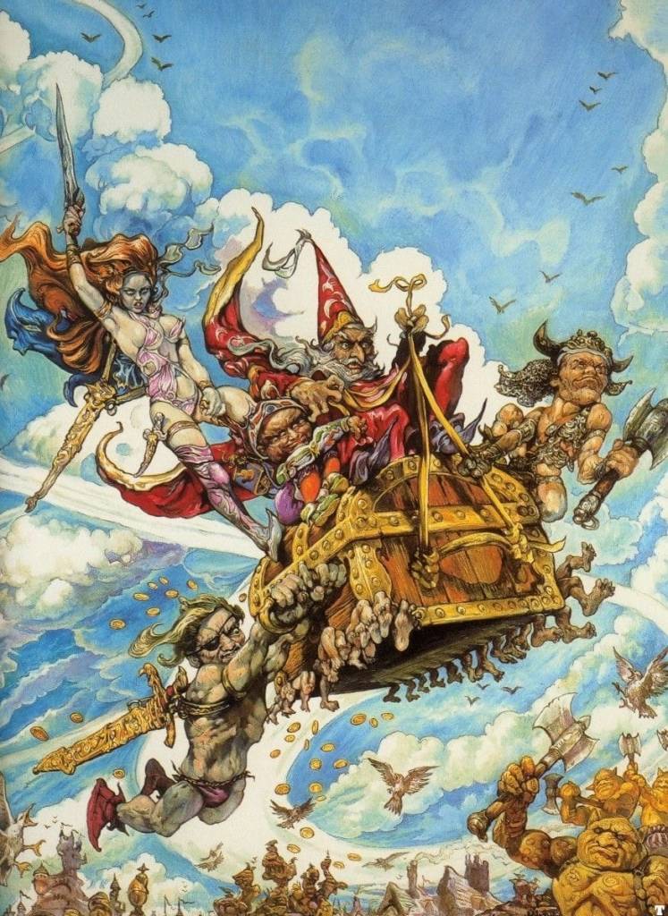 Today I’ll be reminiscing about the art of Josh Kirby, science fiction’s most vivid imagination. His masterful blend of chaos and precision, humor and horror, fantasy and science fiction enthralled me as a kid as I worked my way through Terry Pratchett’s Discworld novels, which were all adorned with Kirby’s weird and fantastical art. And his works still has the same effect on me today.