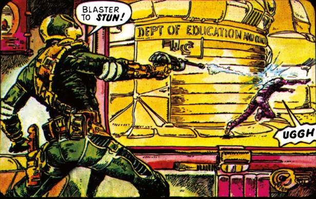 Ho ho! Yeah, that Edu-bot was getting on my nerves from the very first panel it appeared in. I just wish the local cops got their just desserts as well.