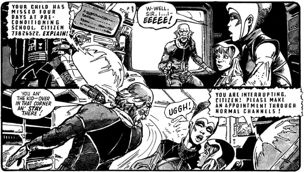 There’s nothing quite like a time-bomb to remind you it’s a Strontium Dog story – although Electronux are also pretty iconic. Great commentary on the strip, it’s nice to see how others interpret those moments like the little girl!